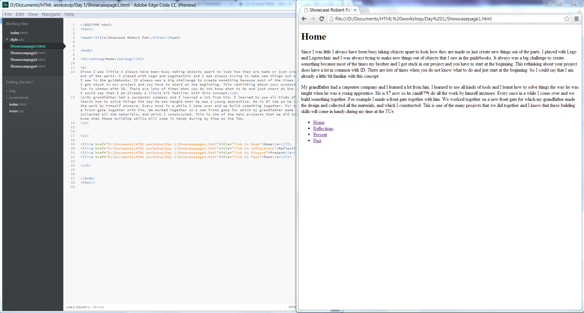 About two kinds of programming: the first was about HTML, and the second was about CSS. The focus of course was to become familiar with programming in order to be able to build basic websites ourselves. The course took three mornings and we had to do small assignments which we later on revised. Everything was posted on a website called showkaas. I think in the future I will make my own website using HTML and CSS but my expertise is not that developed to be able to make a fully functional website.